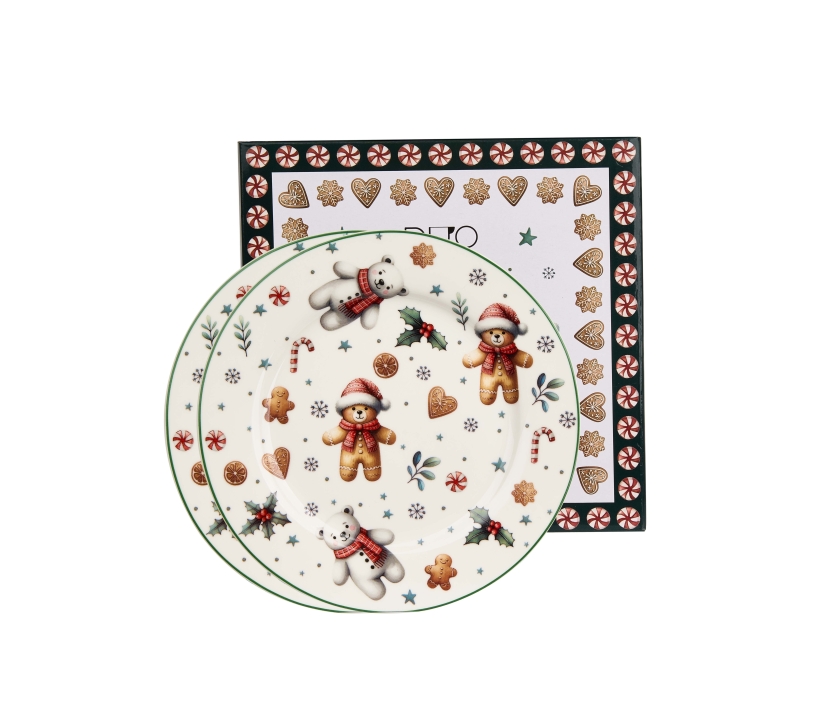 Sada dvoch dezertných tanierov CHRISTMAS CUTIES z vianočnej kolekcie, vyrobená z materiálu New Bone China, ktorá sa vyznačuje elegantnou a prírodnou krémovo bielou farbou s jemným leskom a zároveň výnimočnou odolnosťou.