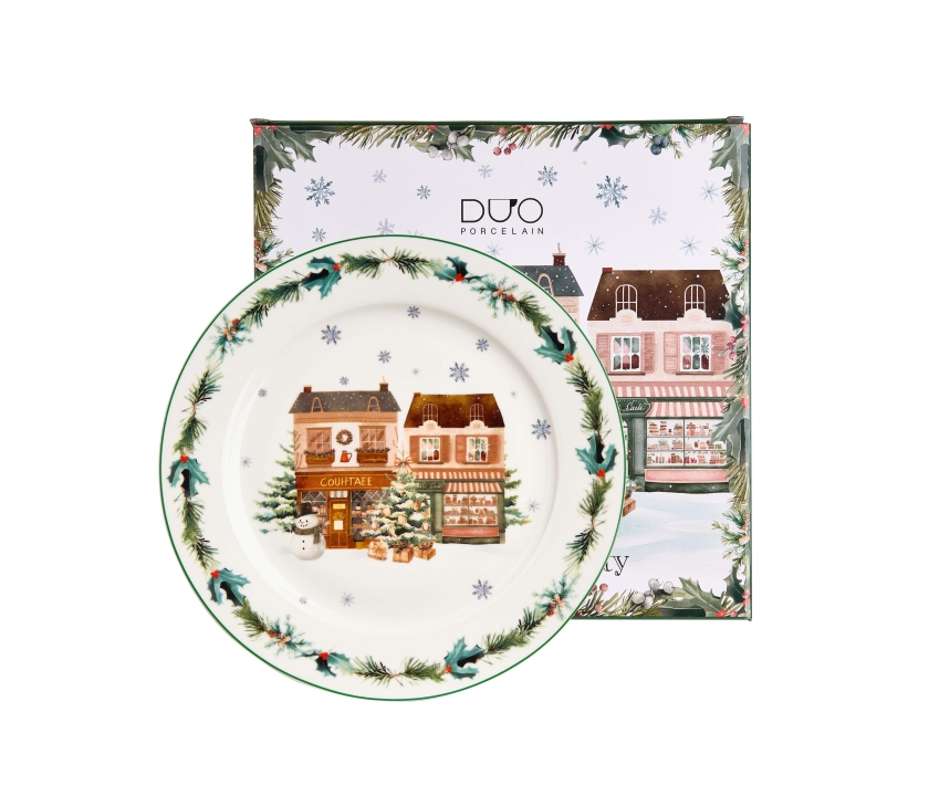 Veľký tanier CHRISTMAS CITY 2, ktorý je súčasťou vianočnej kolekcie, je vyrobený z porcelánu New Bone China, ktorý sa vyznačuje elegantnou a prírodnou krémovo bielou farbou s jemným leskom a zároveň výnimočnou odolnosťou.