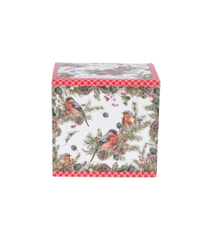 Kolekciu zdobí typicky slávnostný motív farebných vtákov, ktoré sú pôvabne naaranžované s vetvičkami vianočného stromčeka. Klasické červené, zelené a zlaté farby dokonale vystihujú vianočnú atmosféru.