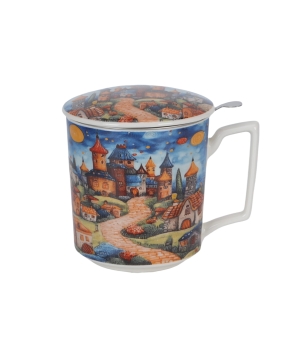 Hrnček s čajovým nálevníkom SLEEPY KINGDOM z kolekcie MODERN, vyrobený z porcelánu New Bone China, ktorý sa vyznačuje elegantnou a prírodnou krémovo-bielou farbou s jemným leskom a výnimočnou odolnosťou pri zachovaní ľahkosti a krehkosti.