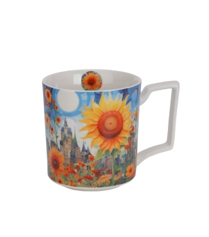 Veľký hrnček SUNFLOWER z kolekcie MODERN, vyrobený z porcelánu New Bone China, charakterizovaný elegantnou a prirodzenou krémovo-bielou farbou s jemným leskom a výnimočnou odolnosťou pri zachovaní ľahkosti a krehkosti.
