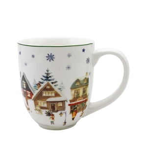 Hrnček XXL CHRISTMAS VILLAGE, ktorý je súčasťou vianočnej kolekcie, je vyrobený z porcelánu New Bone China, ktorý sa vyznačuje elegantnou a prírodnou krémovo-bielou farbou s jemným leskom, ako aj výnimočnou odolnosťou pri zachovaní ľahkého a krehkého pocitu.