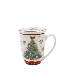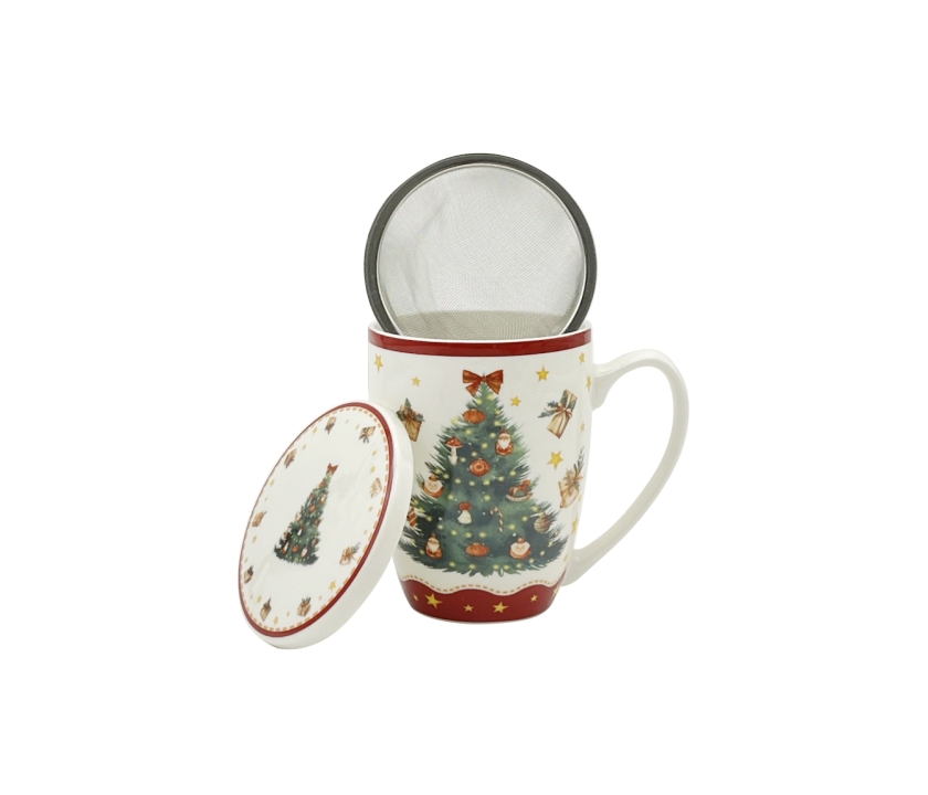 Hrnček CHRISTMAS TREE 3 s nálevníkom, ktorý je súčasťou vianočnej kolekcie, je vyrobený z porcelánu New Bone China, ktorý sa vyznačuje prirodzenou krémovo bielou farbou s jemným leskom a výnimočnou pevnosťou a odolnosťou, pričom si zachováva ľahký a elegantný vzhľad.