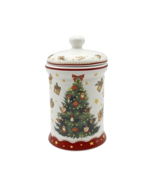Dóza na sušienky CHRISTMAS TREE 3, ktorá je súčasťou vianočnej kolekcie, je vyrobená z porcelánu New Bone China, ktorý sa vyznačuje elegantnou a prírodnou krémovo-bielou farbou s jemným leskom a zároveň výnimočnou odolnosťou.