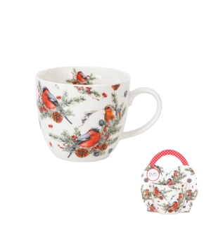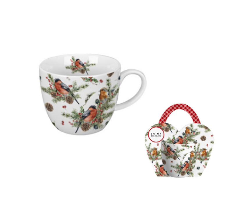 Hrnček CHRISTMAS BIRDS 1 s objemom 460 ml a tvarom košíka, ktorý je súčasťou vianočnej kolekcie, sa vyznačuje prírodnou krémovo bielou farbou s jemným leskom a výnimočnou odolnosťou a dlhou životnosťou, pričom si zachováva ľahký a elegantný vzhľad.