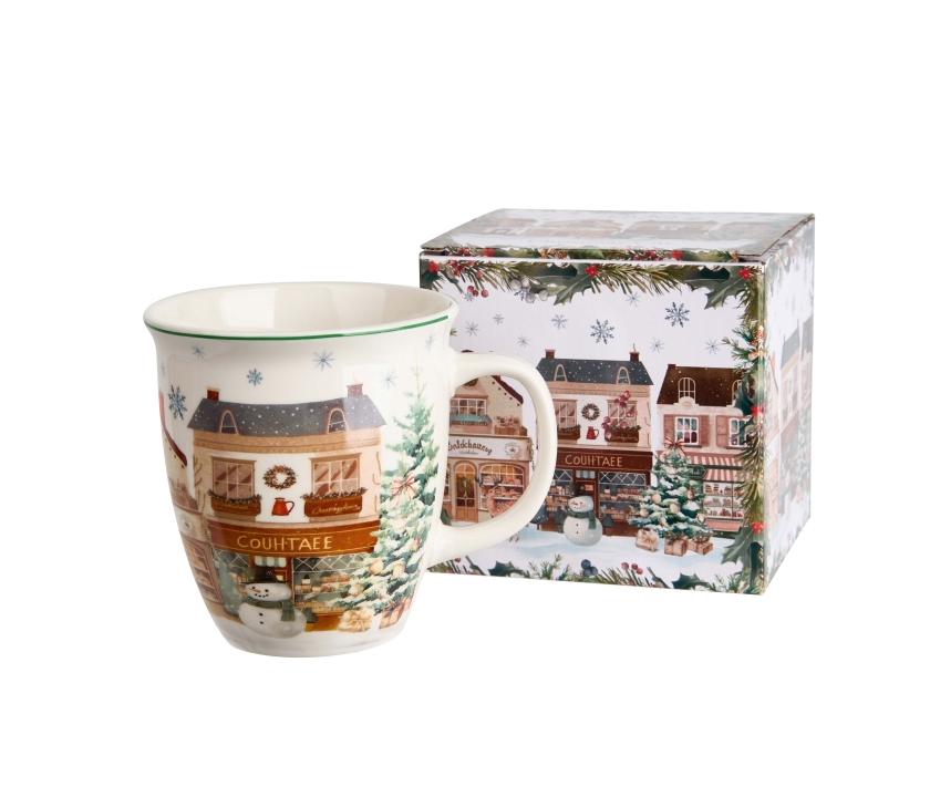 Hrnček CHRISTMAS CITY 2 s objemom 650 ml, ktorý je súčasťou vianočnej kolekcie, sa vyznačuje prírodnou krémovo bielou farbou s jemným leskom a výnimočnou odolnosťou a dlhou životnosťou, pričom si zachováva ľahký a elegantný pocit.
