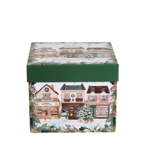 Túto kolekciu zdobí očarujúci motív maľovaných mestských domov, ktorý vytvára hrejivú a útulnú atmosféru. Trblietavé hviezdy, snehuliak a krásne ozdobený vianočný stromček vytvárajú jedinečnú a magickú atmosféru. Jemný rám z vetvičiek cezmíny dodáva kompozícii sviatočný nádych.