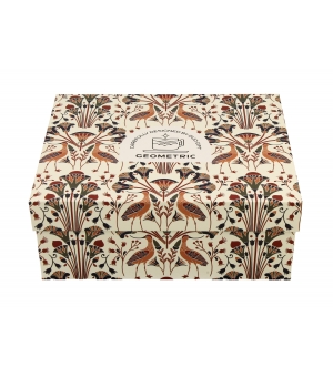 Líniu zdobí motív mozaikových volaviek obklopených fantazijnými ľudovými kvetmi usporiadanými symetricky, v opakovane sa opakujúcich sekvenciách. Výrazné farby námorníckej modrej, červenej a jemných pastelov krásne splývajú s bielym podkladom. Harmonická a decentná estetika dodáva kolekcii elegantný a štýlový vzhľad. Vďaka symetrickej štruktúre vzoru pôsobia výrobky, ktoré ho používajú, vkusne a esteticky, upútavajú pozornosť a dodávajú im jedinečný charakter.